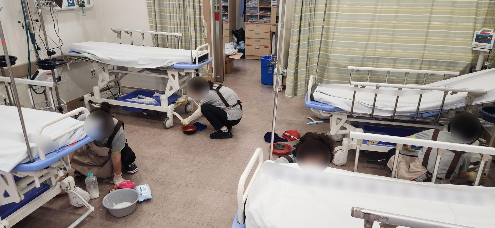평소에 관리하기 힘들었던 응급실 침대틀과 구석진 장소에
